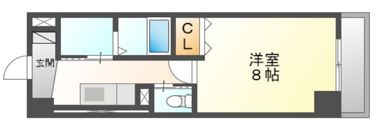 間取は1Kタイプと一人暮らしにちょうどいいお部屋。